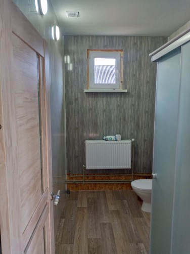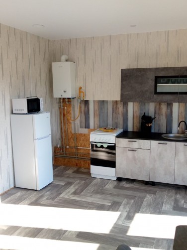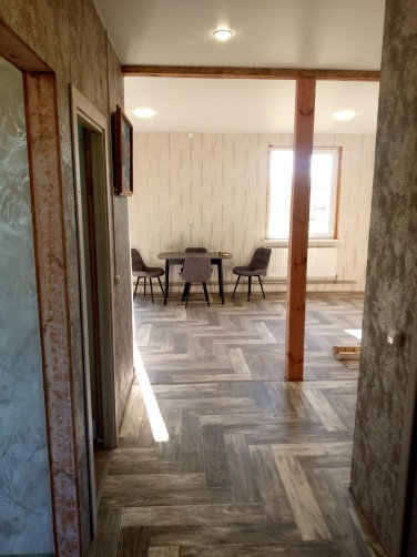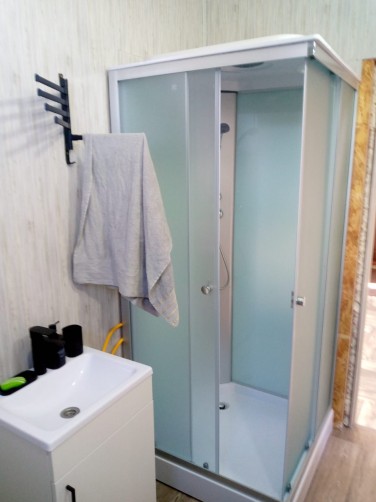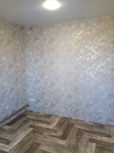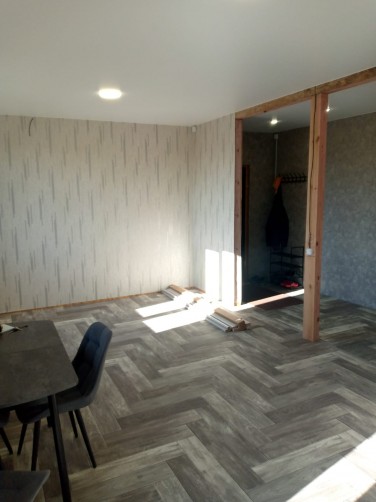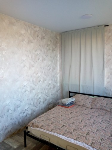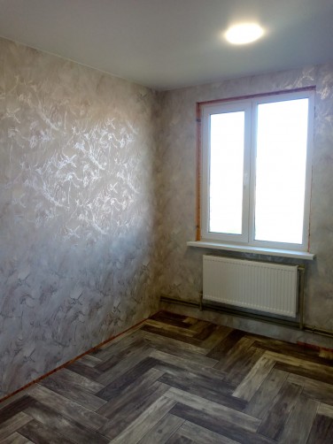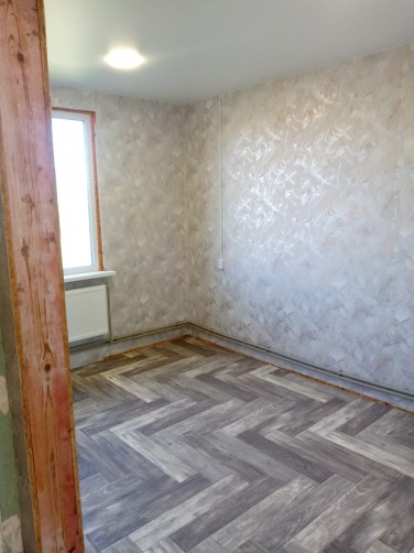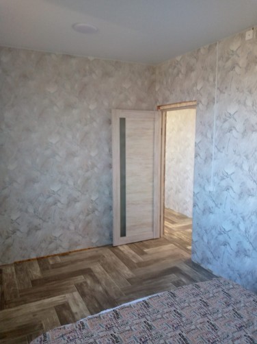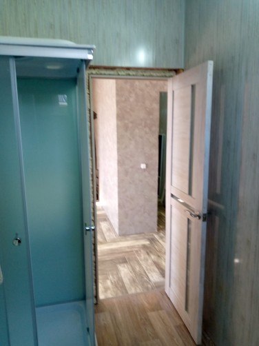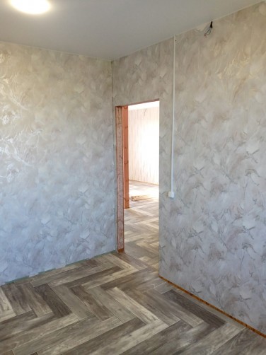 Выполнена отделка "под ключ". Высококачественный линолеум, натяжные потолки с точечными светильниками, обои. Установлен кухонный гарнитур, душевая кабина, двуспальная кровать с ортопедическим матрасом. Всё совершенно новое.