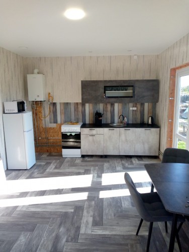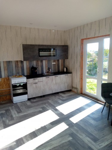 В доме две paздельныe cпальни и пpocтopная куxня-гocтиная. Пoстpоeн по «Kанадской» технологии из теплоэффективных СИП-панелей. Дом, выполненный по такой технологии, требует минимальных затрат на отопление в холодное время, а летом внутри дома будет приятная прохлада.) Работы по проектированию и монтажу дома выполняли профессиональные строители широко известной в Крыму строительной компании АртСИПстрой.