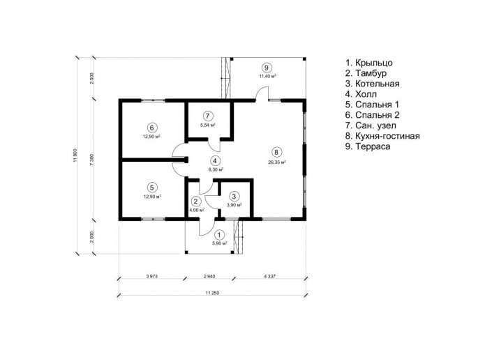 Уютная планировка, просторные спальные комнаты и вместительная кухня - гостинная. Терраса 11, 4 м.кв.