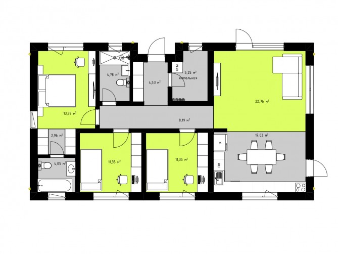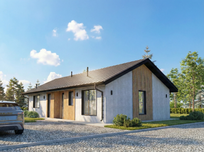 Проект «Классика 5» от ДМ ГРУПП — это современный одноэтажный дом в классическом стиле с двускатной кровлей.
