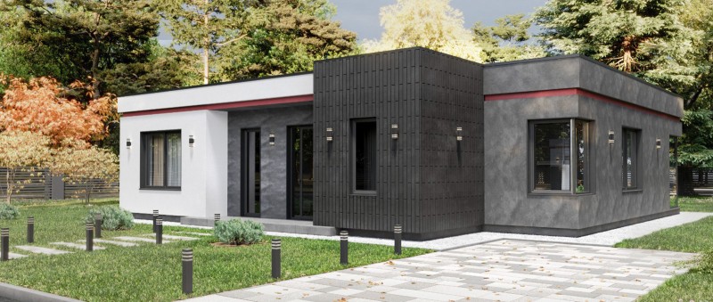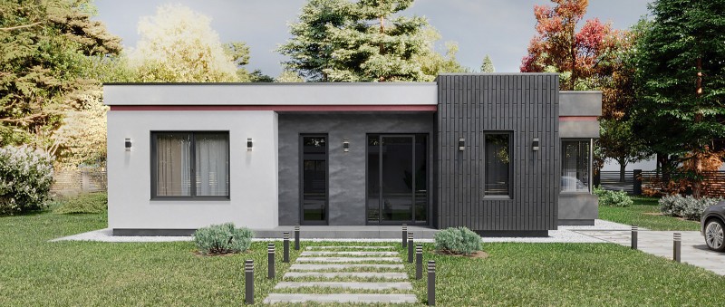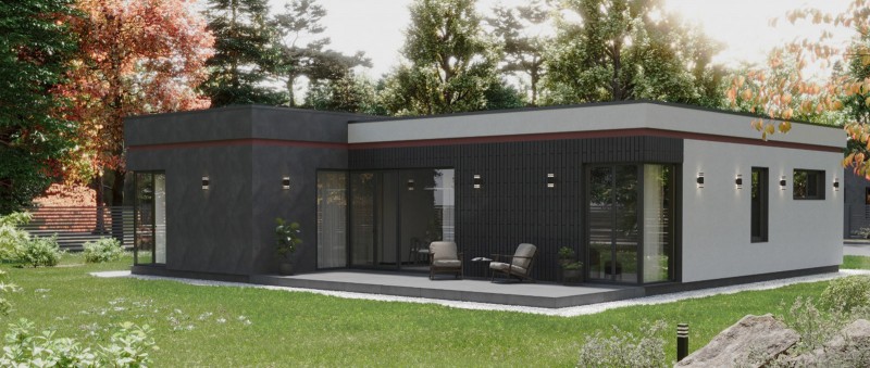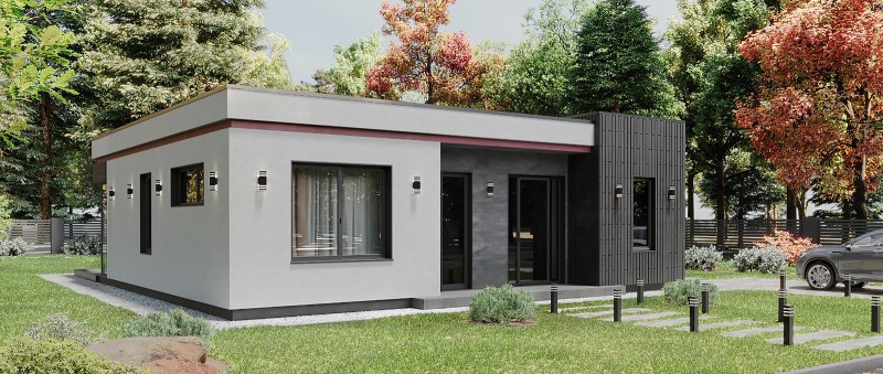 Концептуальный дом от строительной компании "ДМ Групп" с рациональной планировкой. Зонированная кухня - столовая с отдельной гостиной. Панорамные угловые окна обеспечивают достаточно света и выход на террасу. В доме предусмотрены две спальни и современная мастер-спальня, которая предлагает все удобства для комфортного проживания.