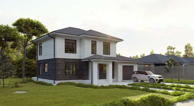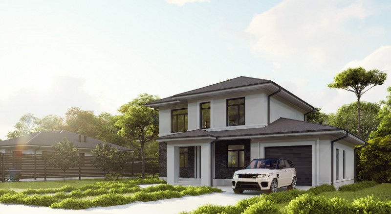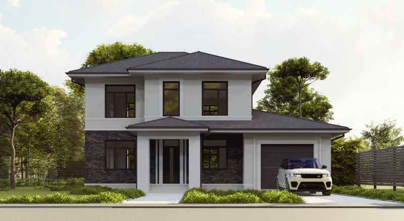 Красивый большой двухэтажный дом с оригинальными комбинированными фасадами облицовочный кирпич и декоративная штукатурка, интересной кровлей и гаражом на один авто. Имеет четыре спальни, одна из них мастер спальня с гардеробной, просторную кухню гостиную, котельную, постирочную, второй санузел, закрытое от осадков крыльцо и просторную террасу