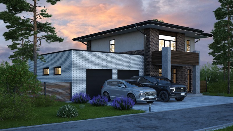 Красивый большой двухэтажный дом с оригинальными комбинированными фасадами облицовочный кирпич и декоративная штукатурка, интересной кровлей и гаражом на 2 авто. Имеет четыре спальни, одна из них мастер спальня с гардеробной и санузлом, просторную кухню гостиную, котельную, постирочную, второй санузел, закрытое от осадков крыльцо и просторную террасу.