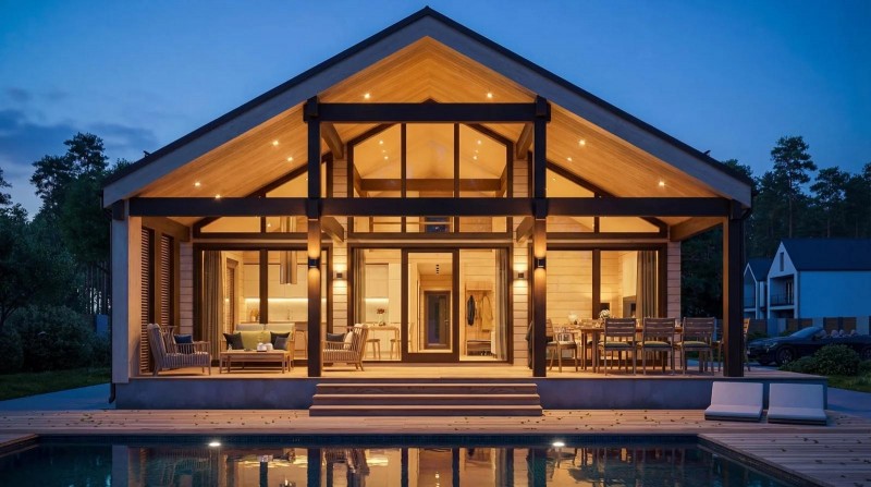 Быстровозводимость такого дома позволяет сократить время строительства и сэкономить на затратах.
