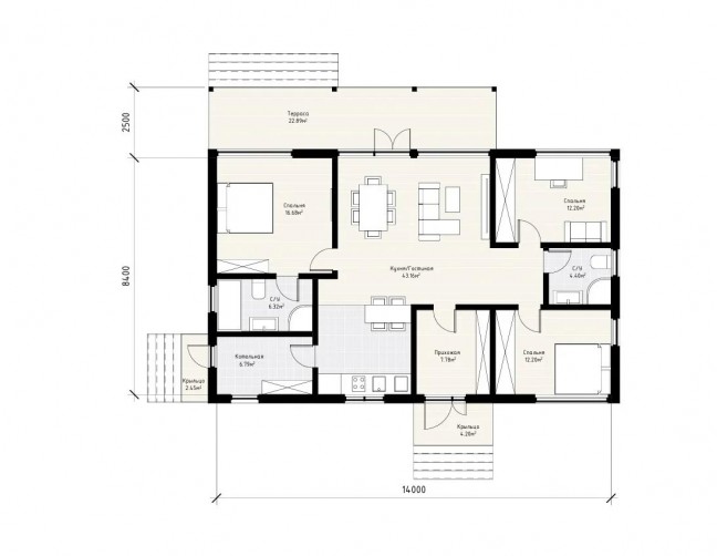 В доме большая кухня-гостиная, мастер-спальня со своей ванной, две просторные детские, большая прихожая, санузел и отдельное техническое помещение.