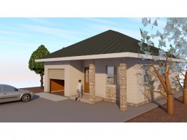 Одноэтажный дом с двускатной крышей, представляет собой классический вариант загородного дома. Двускатная крыша гармонично сочетается с окружающим ландшафтом.