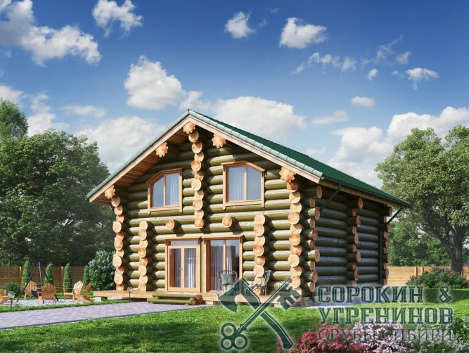 Проект дома из бревна диаметром 460мм, площадь дома 136м2. Размер сруба 9х9 метров. Первый этаж выполнен под свободную планировку, без перегородок и стен, только два несущих столба, вокруг одного из которых лестница на второй этаж. На втором этаже две большие комнаты, которые так же предполагают свободную планировку.