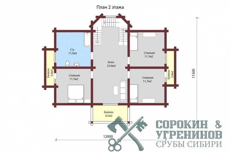 Проект дома из бревна диаметром 260мм, размер сруба по осям 11м х 12м, общая площадь дома 187м2, объём бревна в срубе 170м3. Большой бревенчатый рубленый дом из бревна кедра, тёплый с удобной планировкой, для круглогодичного проживания большой семьи. Рубка сруба производилась в традиционную русскую чашу обло, окорка бревен производилась скобелем. Дом установлен в Новосибирской области, п. Мирный, в 2013 году.