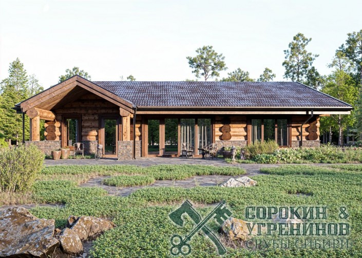 Дом рубленый из большого бревна кедра диаметром 450мм. Сруб общей площадью 229м2. Размер сруба 14х15,2 метров. Дом имеет четыре спальные комнаты, большая гостиная комната совмещена с кухней, небольшая парная и душевая комната, два санузла, прачечная, котельная. И еще есть крыльцо под навесом, и большая терраса с встроенным бассейном. Отличный красивый дом в классическом русском стиле, с высоким цоколем из кирпича и камня, отлично сочетается как эстетически визуально, так и практически, стуны из деревы максмально высоко от земли, а значит от влажности, что сделает дом более долговечным.