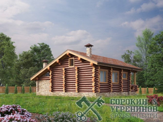 Сруб бани рубленый из бревна кедра диаметра 280мм площадью 76,3м2. Размер сруба 9,8х10,9 метров по осям. Баня с барбекю, есть терраса, прихожая и тамбур. Парная, мойка, комната отдыха и сунузел. Сруб рубленый вручную в русскую чашу (охлоп), брёвна окоренные гидро-окоркой (водой под высоким давлением), а так, же это можно сделать скобелем или лопатой, или строганное рубанком. Объем бревна в срубе 68м3. Баня установлена в Новосибирской области в 2014 году в поселке Ваганов Парк.