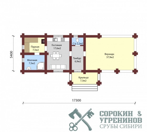Сруб бани рубленый из бревна кедра диаметром 320мм площадью 86,9м2. Размер сруба 5,4х17,3 метров по осям. Баня с верандой. Парная, мойка, санузел, большая гостиная комната, есть тамбур, крыльцо и веранда. Сруб рубленый вручную (канадская рубка), брёвна окоренные гидро-окоркой (водой под высоким давлением), а так, же это можно сделать скобелем или лопатой, или строганное рубанком. Объем бревна в срубе 120м3. Баня установлена в Екатеринбурге в 2012 году.